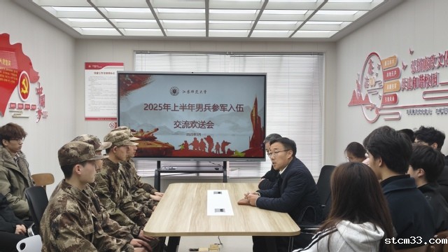 3月12日上午,党委学生工作部在泉南“一站式”学生社区党建工作室举行2025年上半年参军入伍男兵交流欢送会,学工部相关负责人、“一站式”学生社区办公室负责老师、有意向参军入伍大学生代表、学生家长代表30余人参加活动。