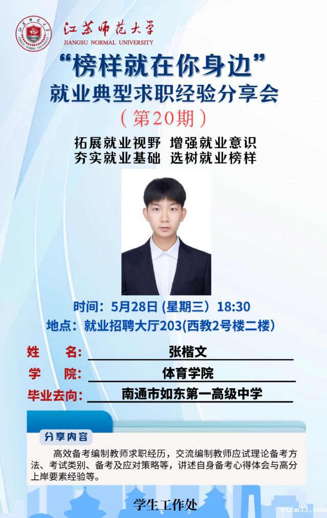 (二)张楷文:分享高效备考编制教师求职经历,交流编制教师应试理论备考方法、考试类别、备考及应对策略等,讲述自身备考心得体会与高分上岸要素经验等。