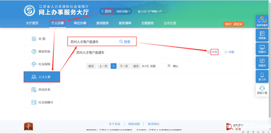 流程:登录江苏省人力资源和社会保障厅网上办事服务大厅(https://rs.jshrss.jiangsu.gov.cn),城市切换至“苏州”,选择“个人办事”,在搜索框内输入“苏州人才落户直通车”,登录个人账号(未注册的需先注册),按照提示上传资料即可。
