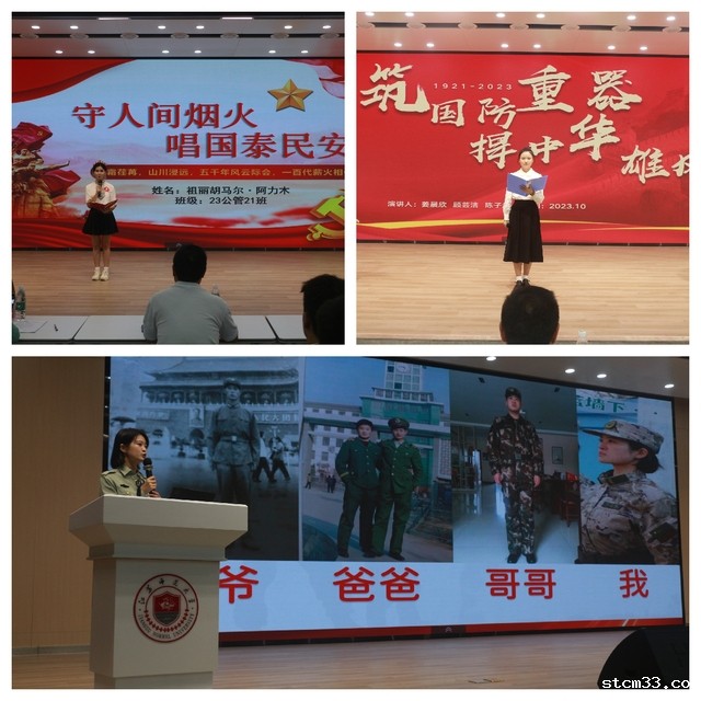 来自新疆的祖丽胡马尔·阿力木同学,从自己故乡的角度讲述了国防铸就的国泰民安,齐宇和牛钟鑫同学通过简短的对话重现了他曾经的军旅生活,巩子越同学通过自己奶奶与“一根针”的故事带观众走进了昔日难忘的历史岁月……