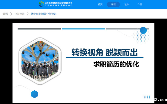 此次巡讲活动,省招就中心还提供了线上讲座资源,同学们通过扫码进入“江苏24365大学生就业服务平台”学习频道,观看了由东北师范大学就业创业教育研究院刘海滨主讲的《转换视角脱颖而出——求职简历的优化》讲座视频,充分发挥了“以赛促学、以赛促育、以赛促就”的积极作用。