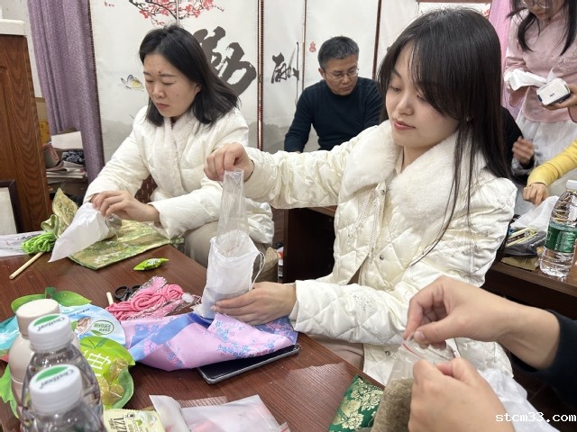 在艾草养生锤制作环节中,主讲老师详细介绍了中医养生理念,深入讲解了艾草在中医文化中的驱蚊辟邪、温通经络、散寒除湿的药用价值和文化底蕴。随后,在实际操作环节中,辅导员老师们认真聆听、积极实践,在相互交流和帮助中,逐渐掌握了制作技巧。通过“放、拉、包、握、缠、塞”等步骤,一个个精美的艾草养生锤便在手中诞生。